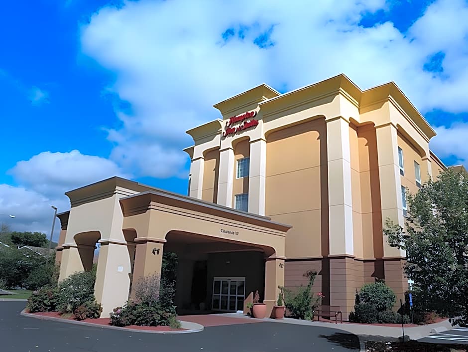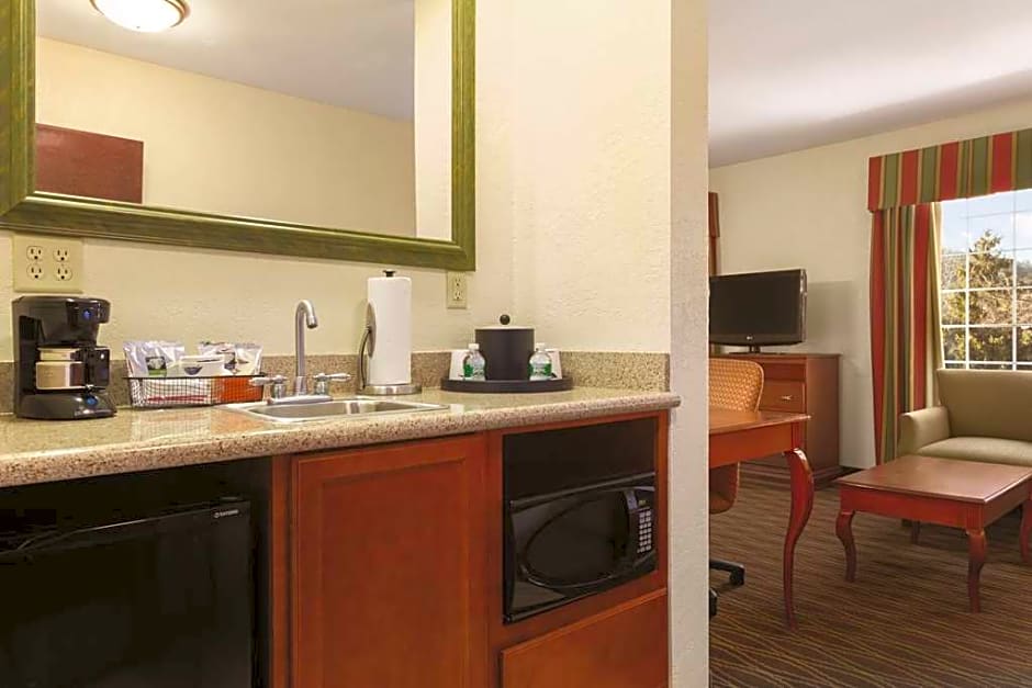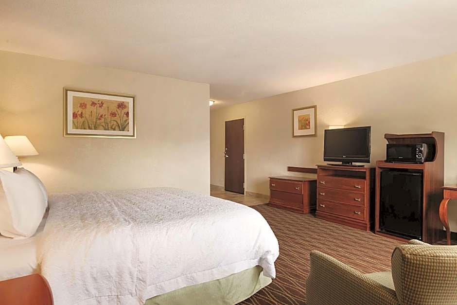 Whirlpool, free WiFi, HDTV, refrigerator, microwave, coffeemaker, large work desk This spacious studio suite features our king-sized clean and fresh Hampton bed®, and a relaxing whirlpool tub. Watch a movie on the HDTV, catch up on work at the large desk, and stay connected with free WiFi access. Refresh in the bathroom which has a WaterPik showerhead and curved shower rod that allows more light and space in the shower.